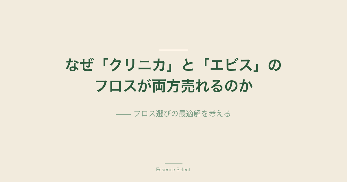 クリニカとエビスのフロスが両方売れ続けている理由は、「するっと入る」を違う技術で実現しているから。クリニカは糸のなめらかさ、エビスは薄さ。どちらが上ということではなく、自分の歯間に合うほうが正解です。