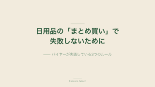 日用品のまとめ買い、本当にお得ですか?年間数千点を仕入れるバイヤーが実践する「使い切れる量」「使うから買う」「中身を確認」の3つのルール。