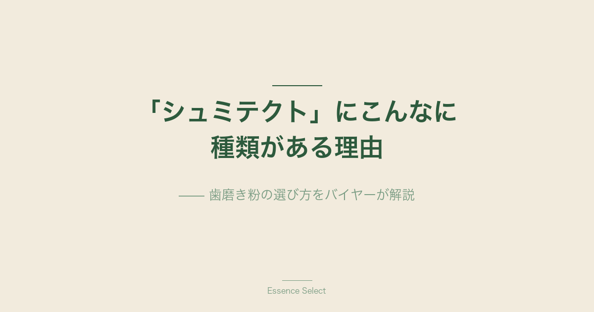 シュミテクトの種類が多い理由は、「知覚過敏+α」の「α」が人によって違うからです。歯周病が気になる人、ホワイトニングしたい人、全体的にケアしたい人——それぞれに合わせた設計になっています。